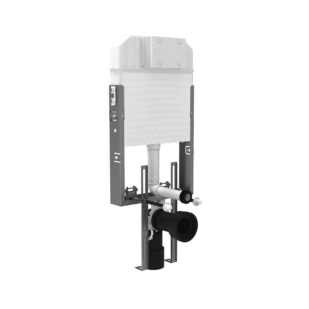 Τα νέα εντοιχισμένα καζανάκια είναι πλήρως μονωμένα με διογκωμένη πολυστερίνη. Αυτή η μόνωση βοηθά το εντοιχισμένο καζανάκι να αποκτήσει εξαιρετική αντίσταση στην κρούση και διπλή μείωση της στάθμης θορύβου. Ο όγκος του νερού είναι 6lt μέγιστο. Η δεξαμενή είναι εξοπλισμένη με ορειχάλκινη διπλή βαλβίδα εκκένωσης. Οι όγκοι έκπλυσης μπορούν να ρυθμιστούν 3lt ή 6lt. Η πλακέτα χειρισμού δεν περιλαμβάνετε στο σετ του καζανακίου. Όλα τα μοντέλα συνοδεύονται με συστολή 100/90 η οποία επιτρέπει την μετατροπή της αποχέτευσης από Ø100 σε Ø90 καθώς και ρυθμιζόμενες ντίζες στήριξης της λεκάνης που ρυθμίζονται για διάκεντρο 18cm ή 23cm. Ακόμη, το μοντέλο έρχεται μαζί με ειδικό εξάρτημα το οποίο επιτρέπει τον σωλήνα αποχέτευσης να περιστραφεί ανάλογα με τις ιδιαιτερότητες της εγκατάστασης. Το πλαίσιο των καζανακίων είναι ηλεκτροστατικά βαμμένο με αποξειδική βαφή, ενώ οι βάσεις ρύθμισης του ύψους είναι γαλβάνιζέ. Το μέγιστο φορτίο ανάρτησης είναι 400Kg. Εγγύηση 10 ετών.