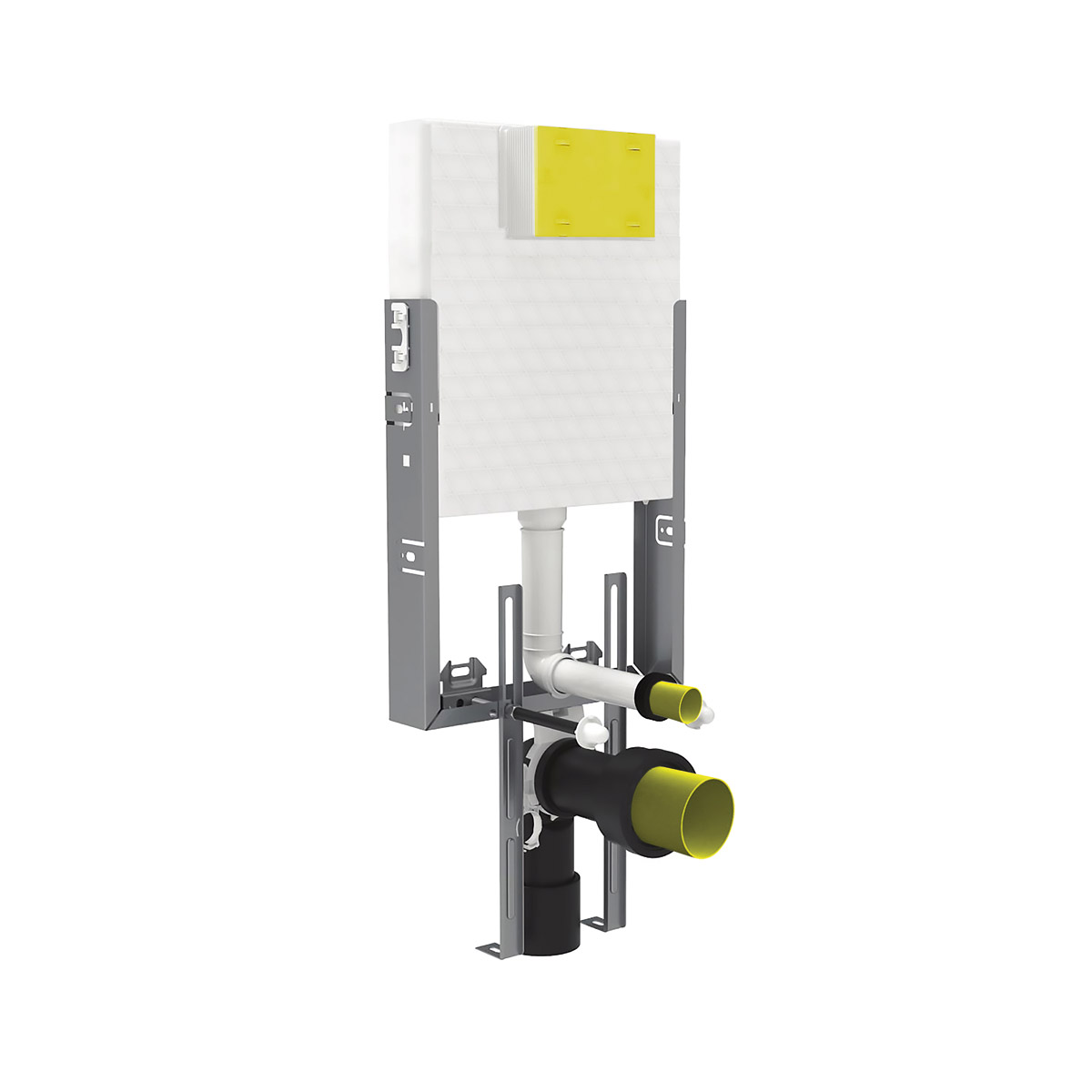 Τα νέα εντοιχισμένα καζανάκια είναι πλήρως μονωμένα με διογκωμένη πολυστερίνη. Αυτή η μόνωση βοηθά το εντοιχισμένο καζανάκι να αποκτήσει εξαιρετική αντίσταση στην κρούση και διπλή μείωση της στάθμης θορύβου. Ο όγκος του νερού είναι 6lt μέγιστο. Η δεξαμενή είναι εξοπλισμένη με ορειχάλκινη διπλή βαλβίδα εκκένωσης. Οι όγκοι έκπλυσης μπορούν να ρυθμιστούν 3lt ή 6lt. Η πλακέτα χειρισμού δεν περιλαμβάνετε στο σετ του καζανακίου. Όλα τα μοντέλα συνοδεύονται με συστολή 100/90 η οποία επιτρέπει την μετατροπή της αποχέτευσης από Ø100 σε Ø90 καθώς και ρυθμιζόμενες ντίζες στήριξης της λεκάνης που ρυθμίζονται για διάκεντρο 18cm ή 23cm. Το πλαίσιο των καζανακίων είναι ηλεκτροστατικά βαμμένο με αποξειδική βαφή, ενώ οι βάσεις ρύθμισης του ύψους είναι γαλβάνιζέ. Το μέγιστο φορτίο ανάρτησης είναι 400Kg.