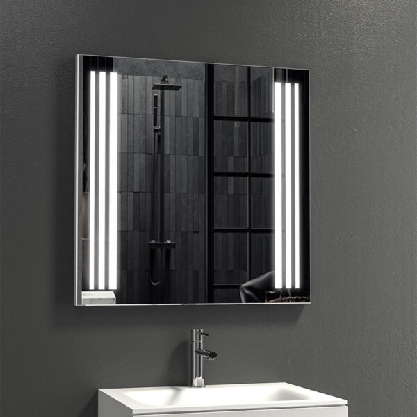 Επιτοίχιος καθρέπτης με πλαίσιο από ανοξείδωτο ατσάλι και κρυφό φωτισμό. Ιδανικός για κάθε μπάνιο με κατακόρυφη ή οριζόντια τοποθέτηση.