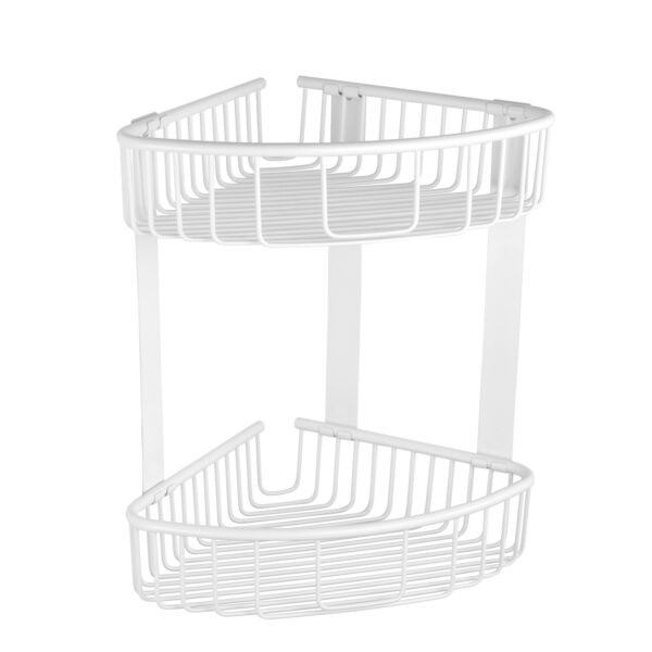 Γωνιακό καλάθι σχαρωτό διπλό RETI 96388866. Είναι κατασκευασμένο από ανοξείδωτο ατσάλι με απόχρωση λευκού ματ. Χαρακτηρίζεται από απίστευτη αντοχή και υψηλή λειτουργικότητα, ενώ ο μοντέρνος σχεδιασμός του το κάνει κατάλληλο για ξενοδοχεία αλλά και για οικιακή χρήση.