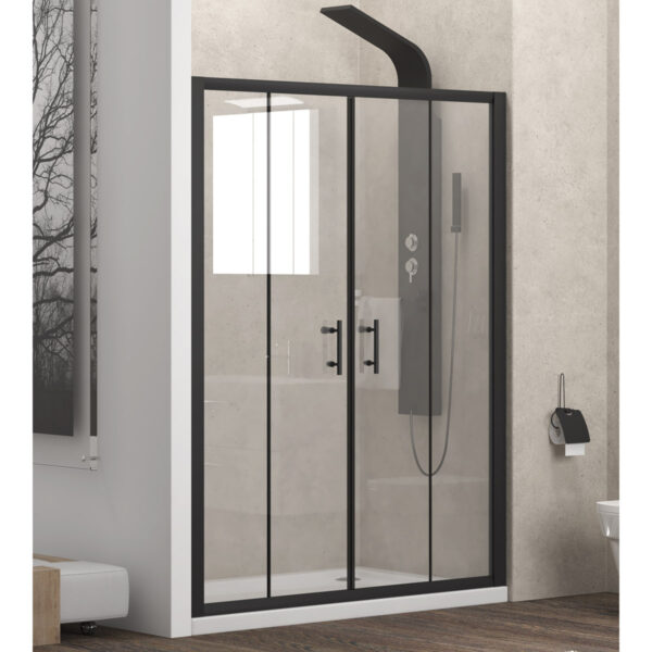 Καμπίνα από τοίχο σε τοίχο με διάφανο κρύσταλλο FLORA 600 Black KARAG 200x190cm