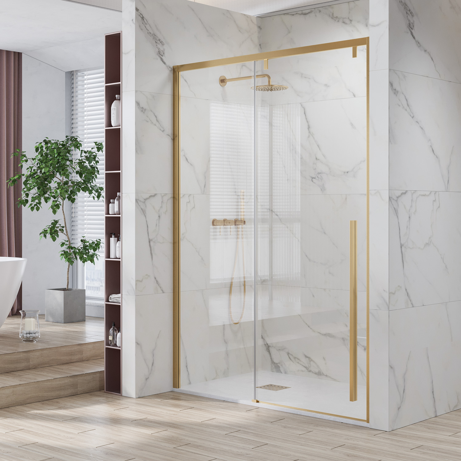 Καμπίνα από τοίχο σε τοίχο με διάφανο κρύσταλλο SANTORINI 400 Gold KARAG 150x200cm