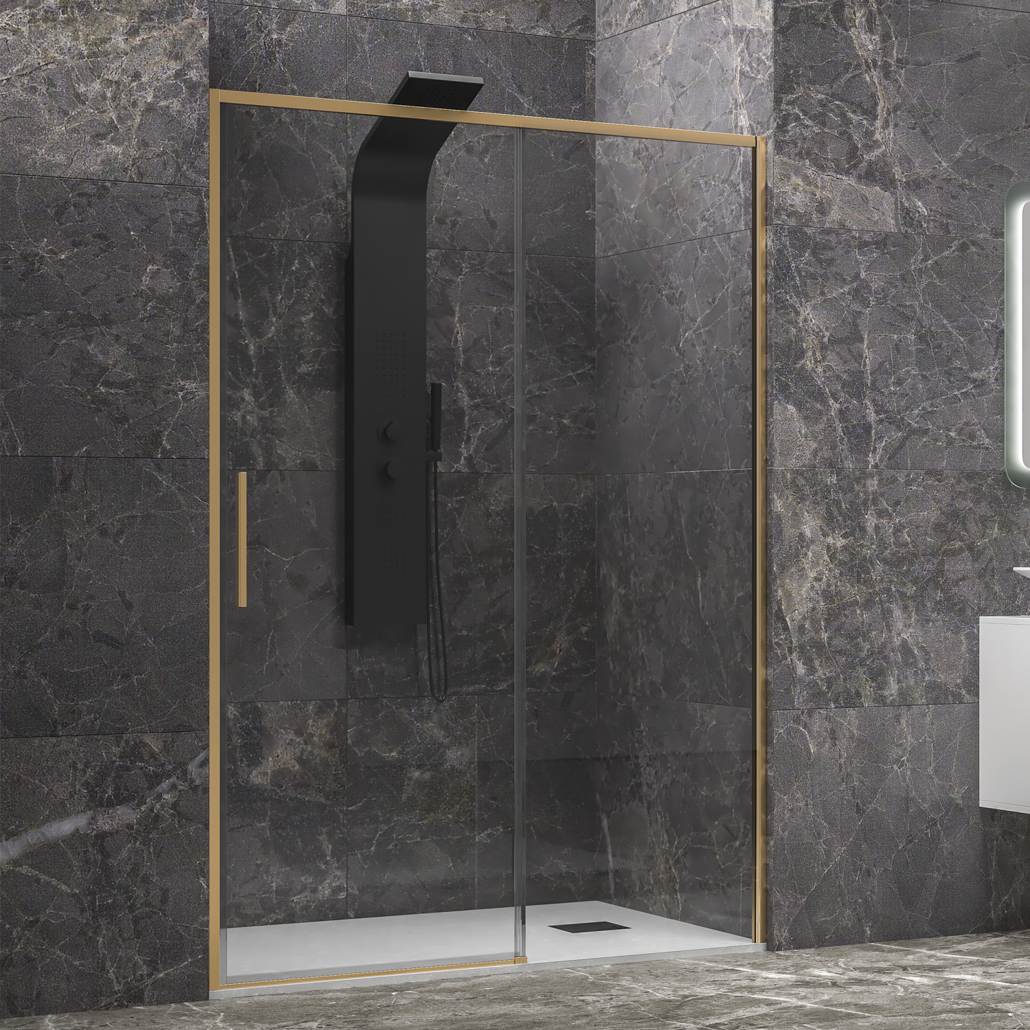 Καμπίνα από τοίχο σε τοίχο με διάφανο κρύσταλλο LEA 400 Gold KARAG 120x200cm