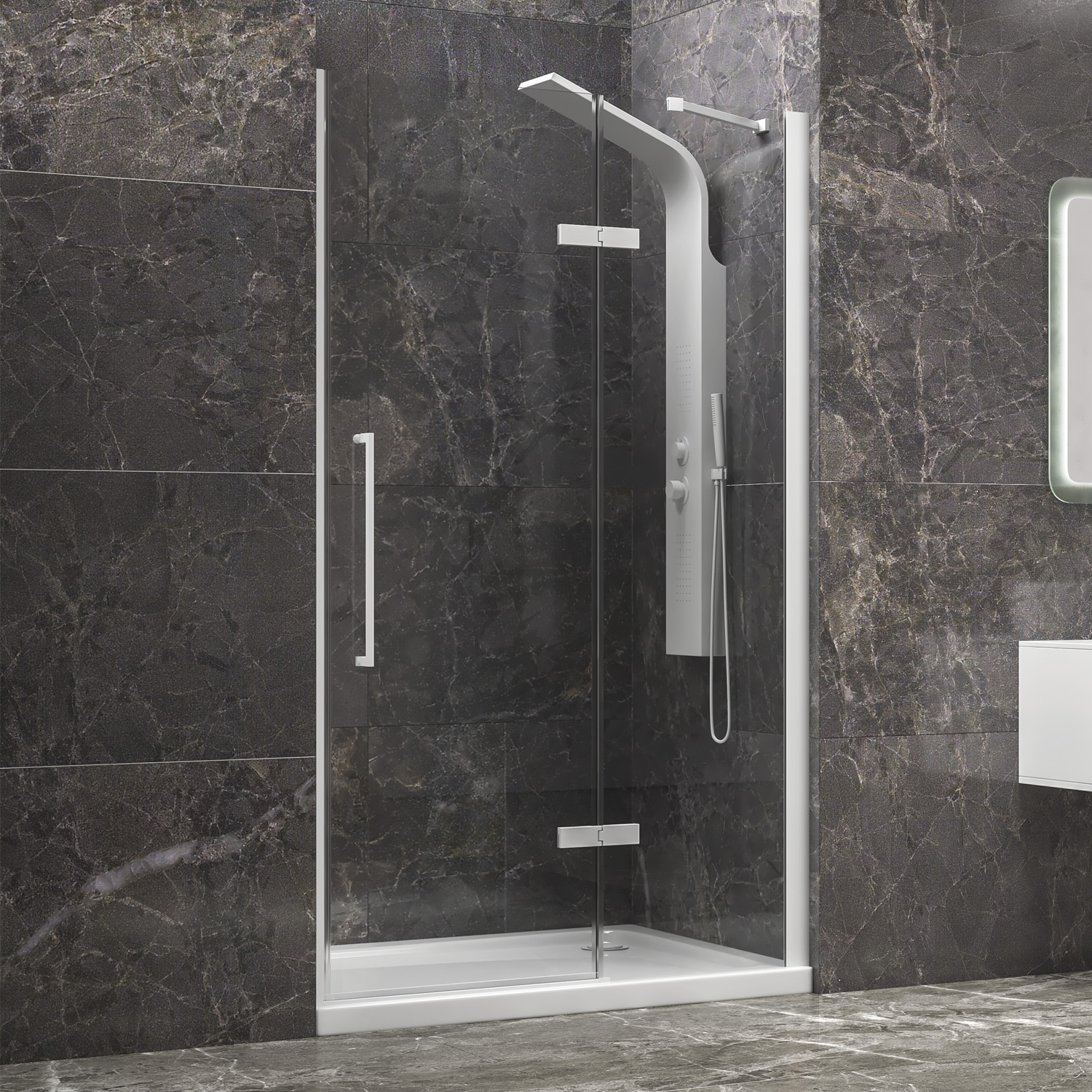 Καμπίνα από τοίχο σε τοίχο με διάφανο κρύσταλλο TINOS 400 White KARAG 140x200cm