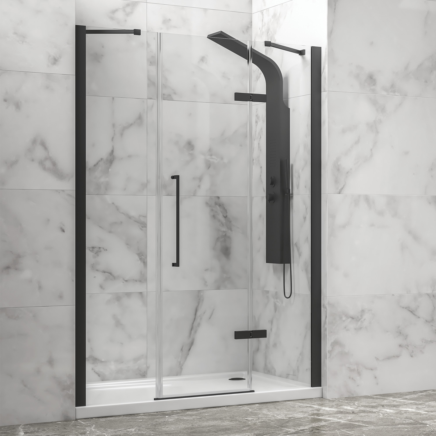 Καμπίνα από τοίχο σε τοίχο με διάφανο κρύσταλλο TINOS 600 Black KARAG 130x200cm