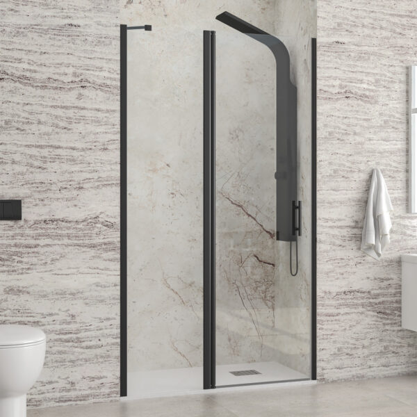 Καμπίνα από τοίχο σε τοίχο με διάφανο κρύσταλλο PANEX 400 ALTO Black KARAG 95x200cm