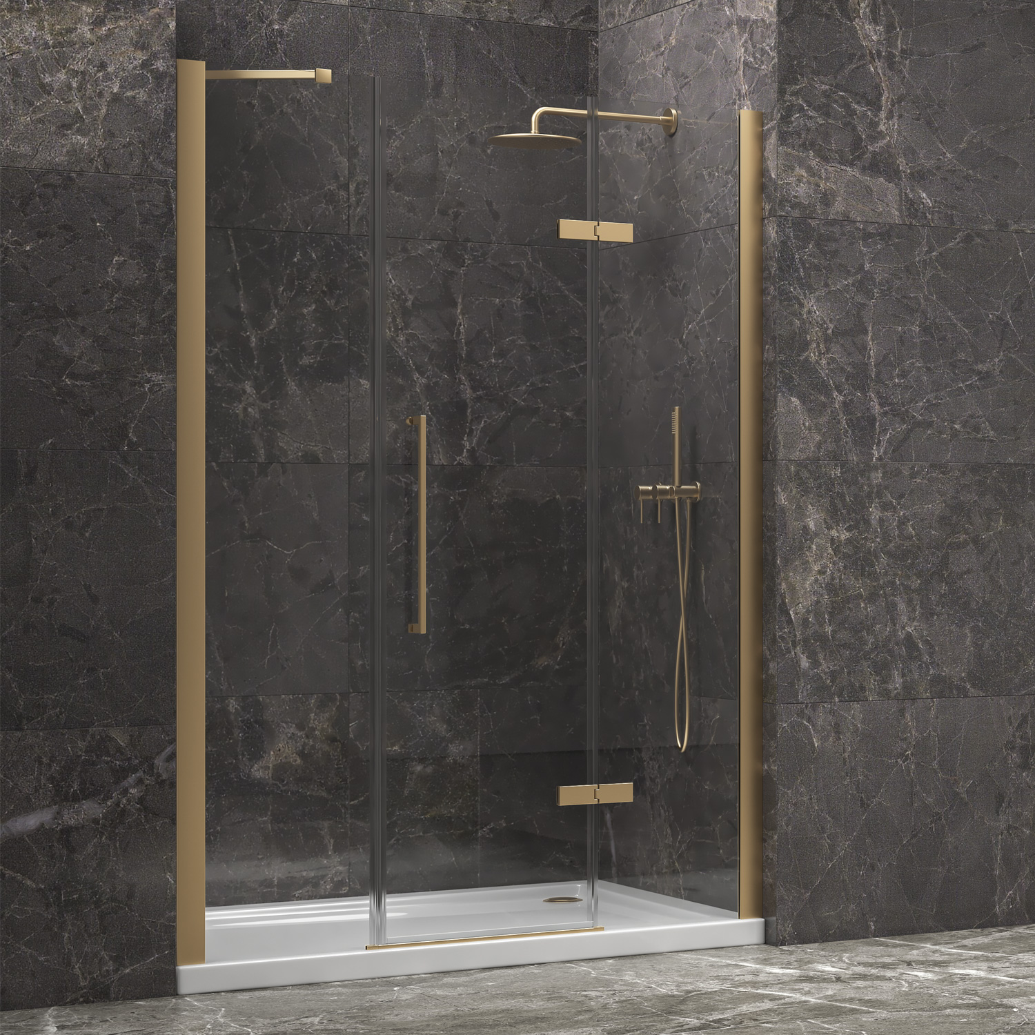 Καμπίνα από τοίχο σε τοίχο με διάφανο κρύσταλλο TINOS 600 Gold KARAG 165x200cm