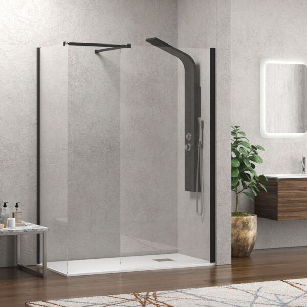 Σταθερά διαχωριστικά ντουζιέρας με διάφανο κρύσταλλο WALKIN 2 Black KARAG 50x200cm