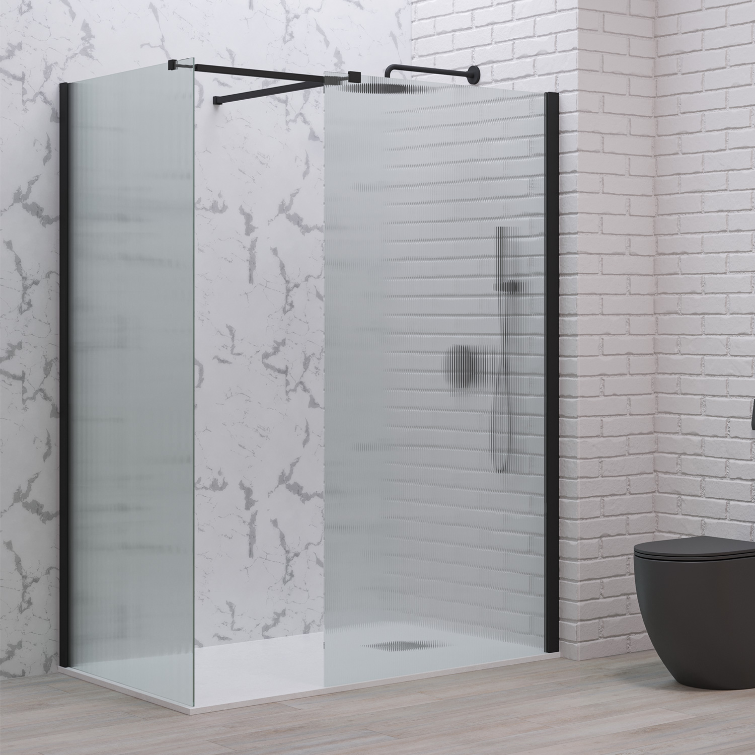 Σταθερά διαχωριστικά ντουζιέρας με flute κρύσταλλο WALKIN 2 Black KARAG