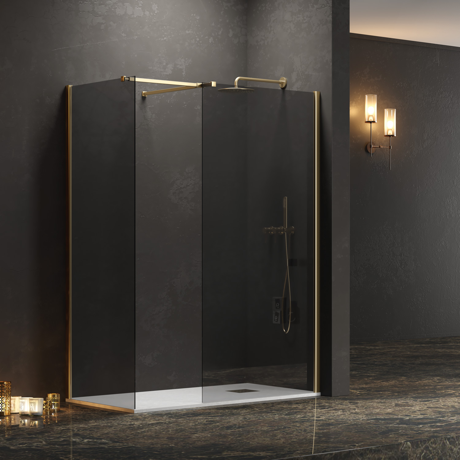 Σταθερά διαχωριστικά ντουζιέρας με fume κρύσταλλο WALKIN 2 Gold KARAG 80x200cm