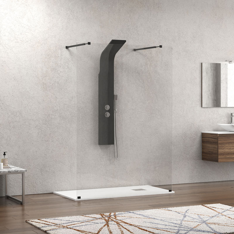 Σταθερό διαχωριστικό ντουζιέρας με διάφανο κρύσταλλο WALKIN 3 Black KARAG 158x200cm
