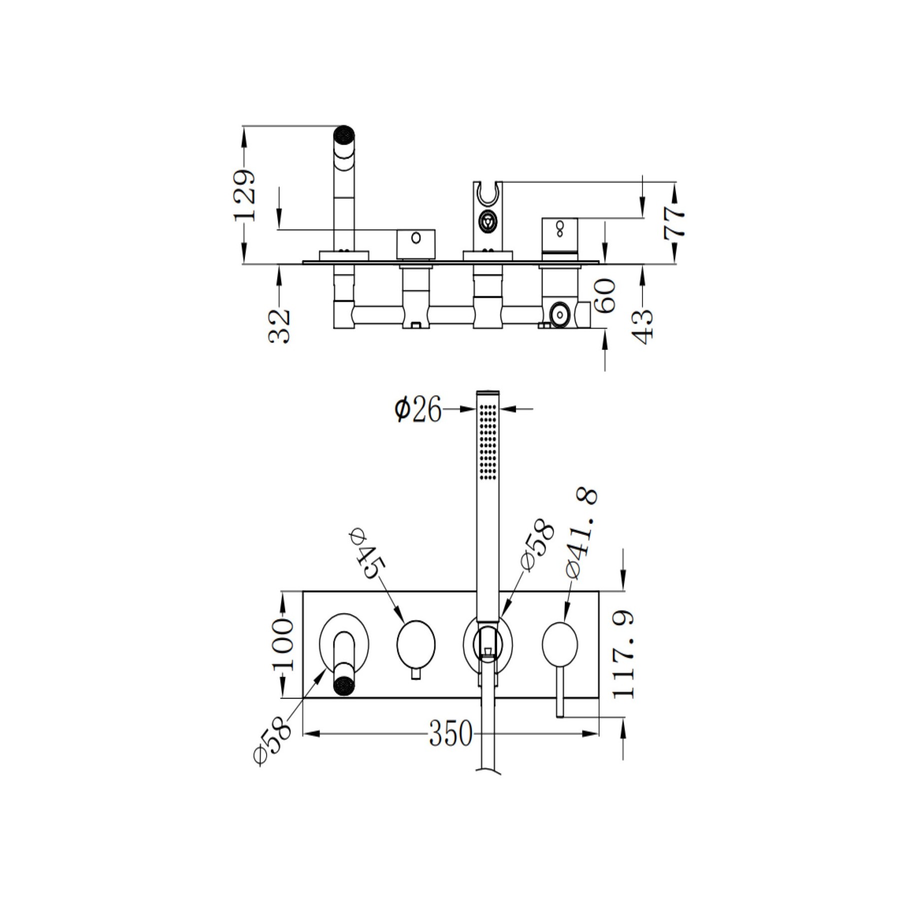 WALL MOUNT BATH MIXER WITH HANDSHOWER [MUSA-18]